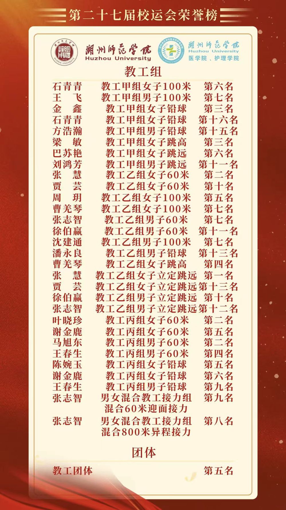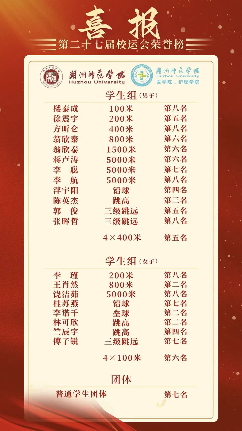 以下为我院师生在本届运动会中斩获的主要荣誉一览: