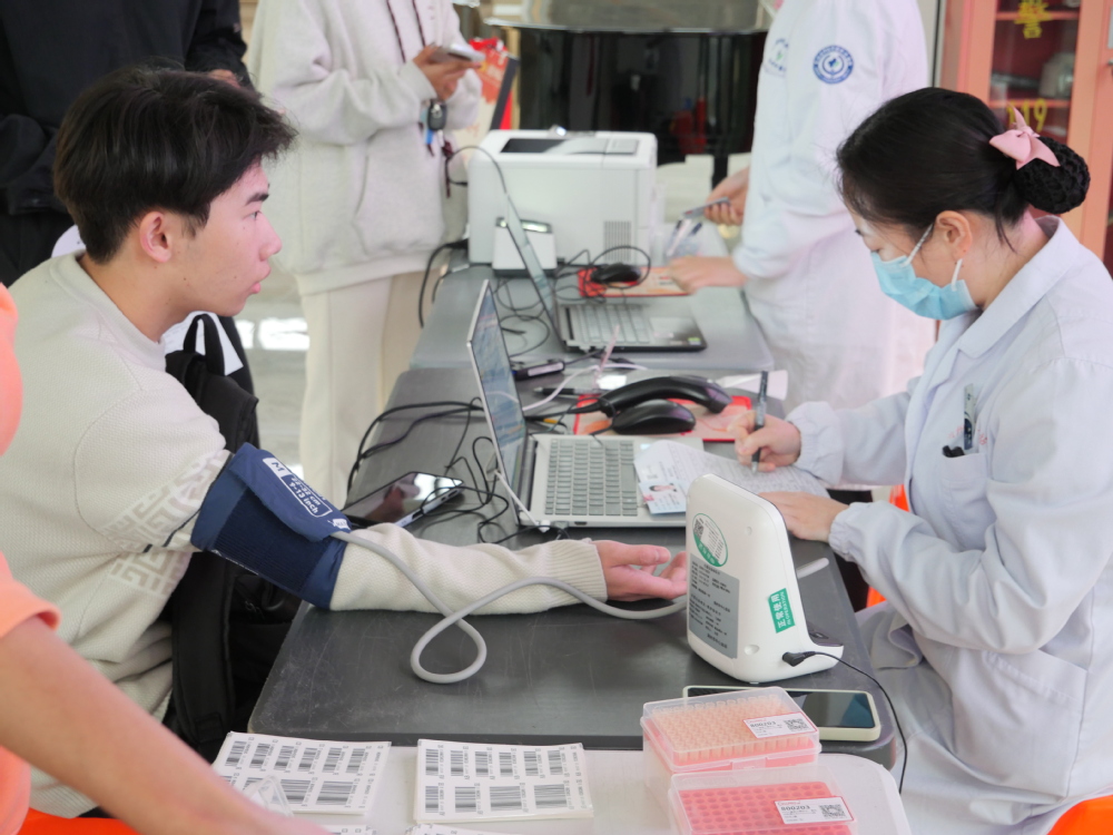 在学院志愿者的协同引导下,同学们依次完成信息登记、血压测量、血液检验等流程,各环节衔接顺畅,现场氛围温暖而有序。伸出臂膀,守护生命。采血区内,同学们从容挽袖,积极配合采血工作。随着血液缓缓流入血袋,他们神情坚定,面带自豪,以实际行动诠释着“健康所系,性命相托”的医学生誓言,完成了从医学学子到生命守护者的生动实践。