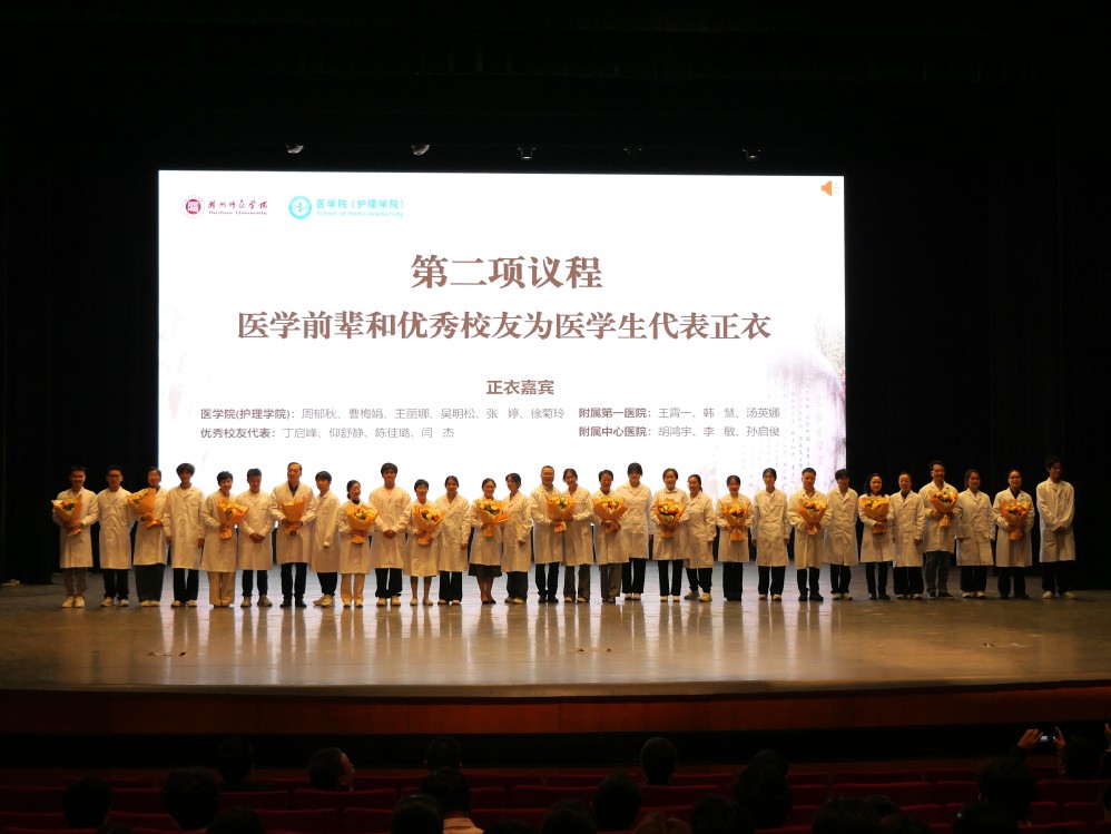 白衣执甲承初心,誓言铿锵赴使命。11月12日下午,我校2025级医学生宣誓暨白衣授予仪式在东校区大会堂举行。校党委副书记丁敢真,湖州市卫生健康委副书记、副主任胡小军,优秀校友代表,附属第一医院、附属中心医院领导和医护代表,校党委宣传部、学工部、团委等部门负责人,医学院(护理学院)领导班子、系部主任、师生代表、2025级全体医学生近500人参加,共同见证医学新生开启职业征途的重要时刻。