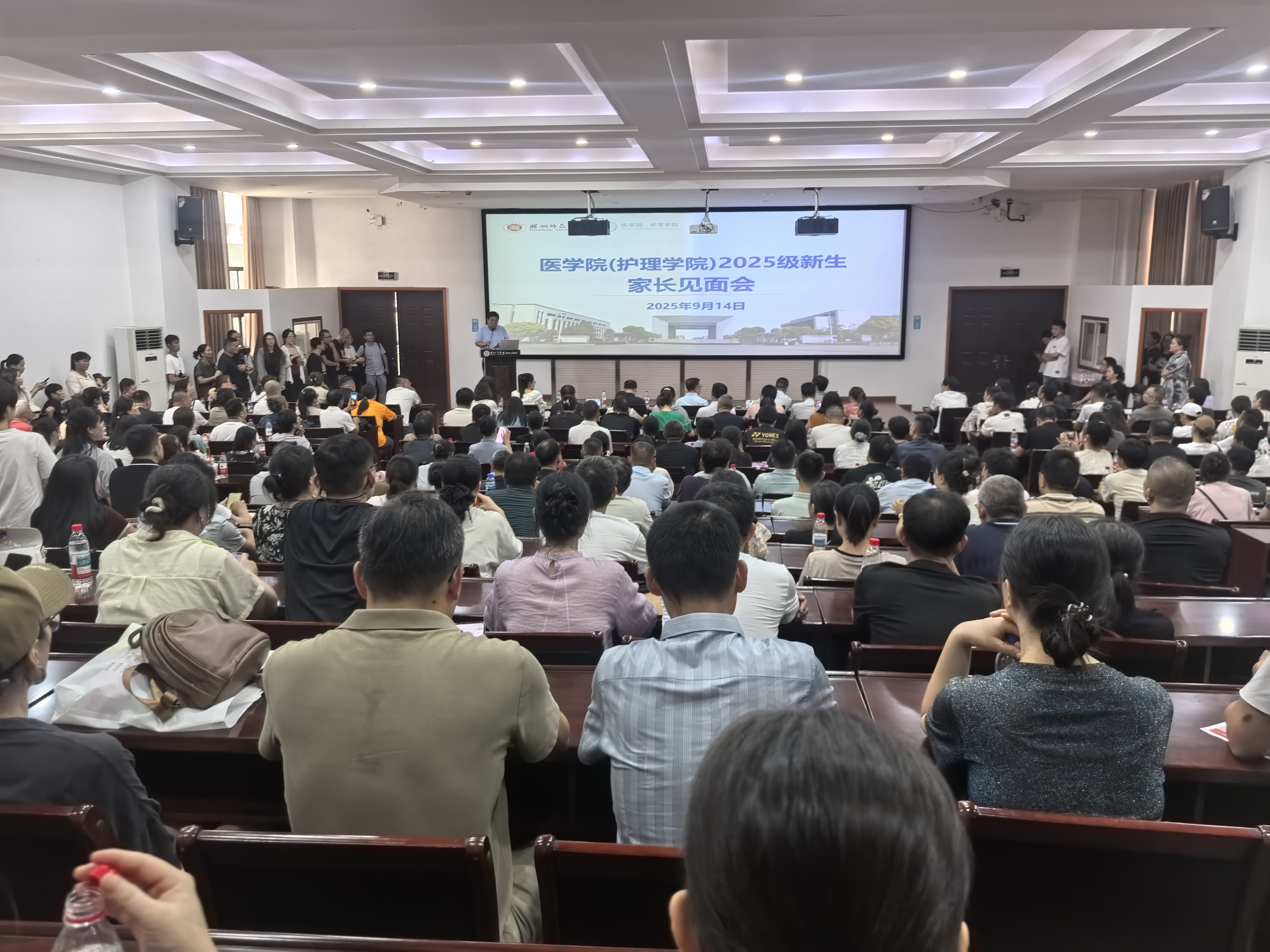 9月14日下午,医学院(护理学院)2025级新生家长见面会于114报告厅顺利开展。学院党委书记甘顺良携领导班子成员出席会议,学院党委副书记董建新主持本次活动。各职能办公室负责人、系部主任、2025级班主任、辅导员及2025级新生家长共计300多人参加本次活动。
