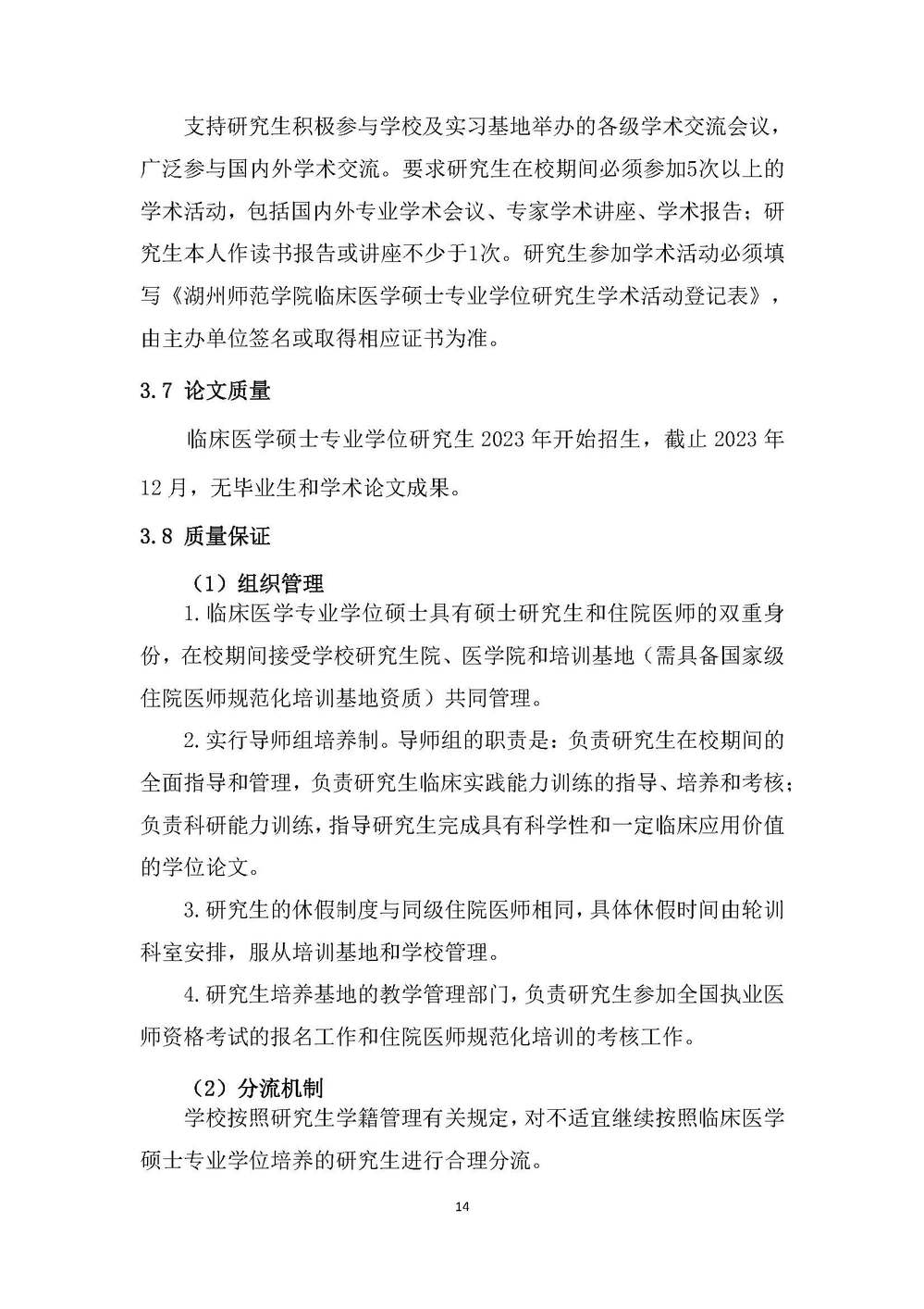 湖州师范学院临床医学专业学位授权点发展质量年度报告(2023)