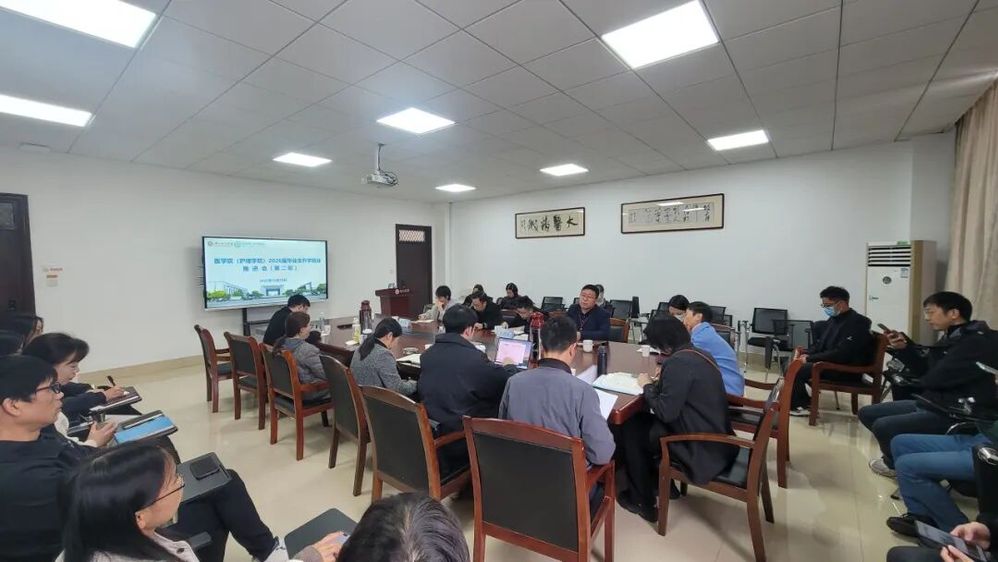 12月10日下午,学院2026届毕业生升学就业推进会在26-510会议室举行。学院领导班子、相关职能部门负责人、附属医院相关负责人、2026届毕业班班主任、全体辅导员参加会议。会议由学院党委副书记董建新主持。