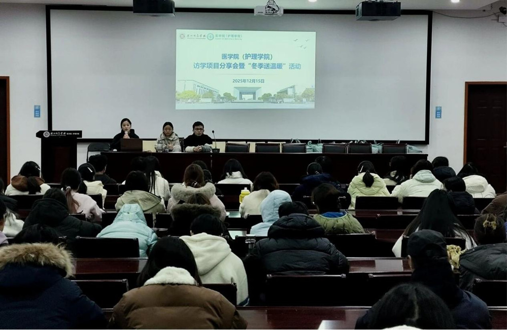 为拓宽学生国际视野、增强学生专业素养,并深化学院人文关怀育人实效,12月15日晚,医学院(护理学院)于26-114报告厅举办访学分享会暨冬季送温暖活动。学工办辅导员巴苏艳老师主持,学院70余名学生参与。