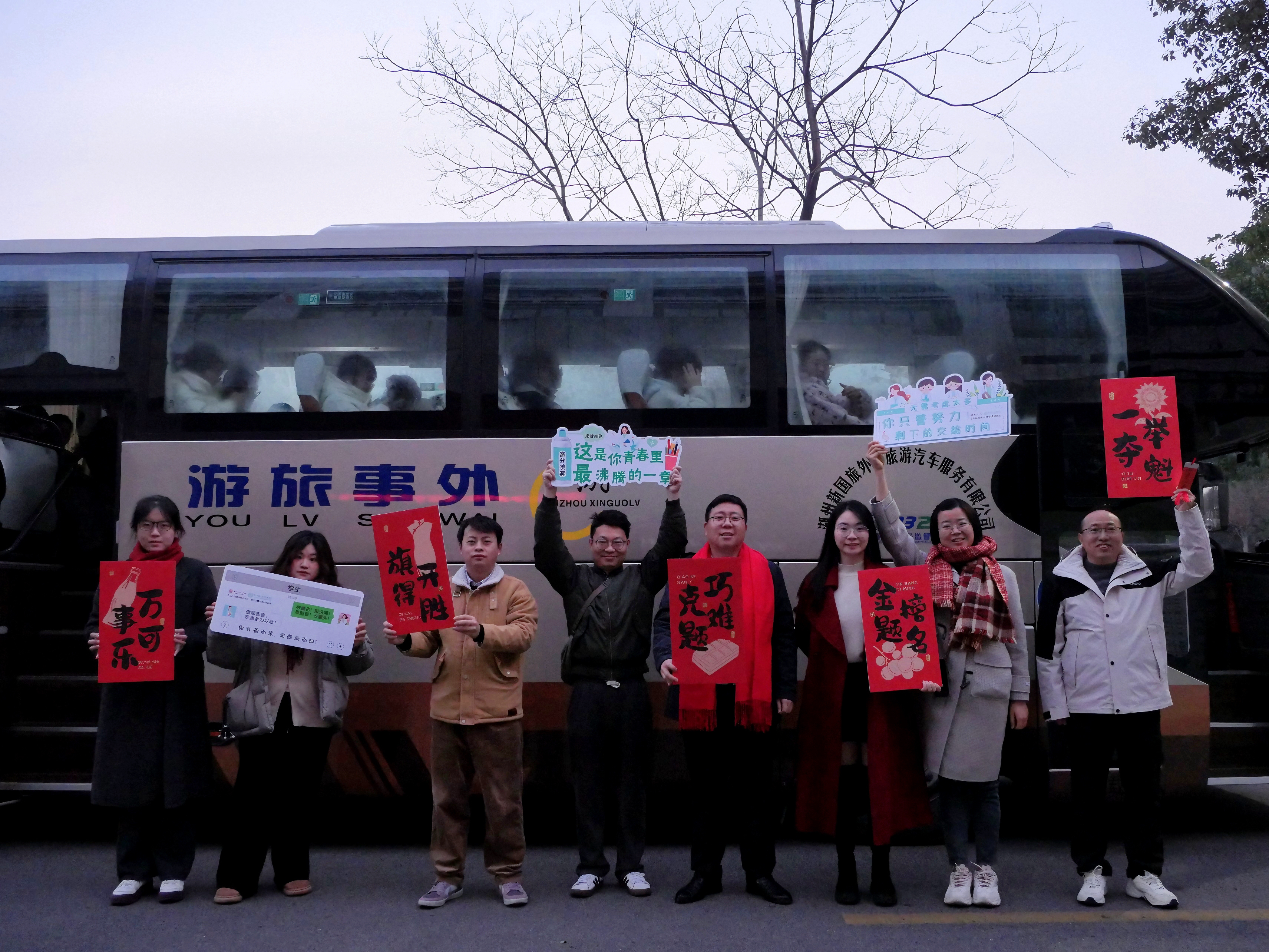 为保障学子顺利赴考,学院专门调度了两辆送考大巴,车身编号分别为“678-1”与“678-2”,谐音“录取吧”,承载着对学子金榜题名的美好祝愿。车队从医学院及两家附属医院分别出发,安全、准时地将考生送达考点,成为考研路上坚实的后勤保障。