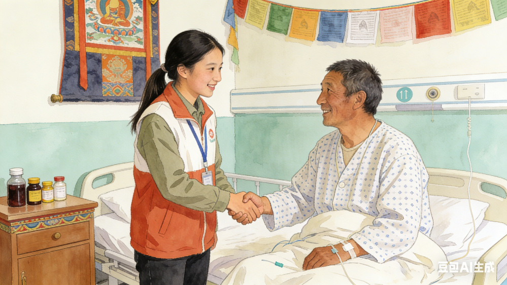 第三关:工作关。我被分配到了西藏的一家医院。真正走进西藏的医疗系统,我才深刻体会到祝老师说的“医疗条件相对落后”意味着什么。根据西藏自治区卫生健康委员会的数据,直到2025年年底,阿里地区人民医院才成功创建三甲,实现了全区七市(地)“三甲”医院全覆盖。在此之前,许多地市的危重病人需要长途转运。最让我动容的一次,是在产科病房检查质控时,遇到了一位藏族阿妈,她抱着襁褓中的婴儿,一脸愁容地问我:“阿佳,我奶水不足,能不能给孩子喂糌粑”,我当场愣住了,在内地,新生儿喂养知识几乎人人皆知,可在这里,竟然还有这样的疑问,我连忙解释:“不行不行,一定要喂奶粉,婴儿消化不了糌粑。”然后手把手教她如何冲调奶粉、如何判断宝宝是否吃饱。那一刻我才真正明白,这里缺的不只是先进的设备和药品,更是基础的医疗知识和健康教育。而这不正是我们护理人最能发挥作用的地方吗?