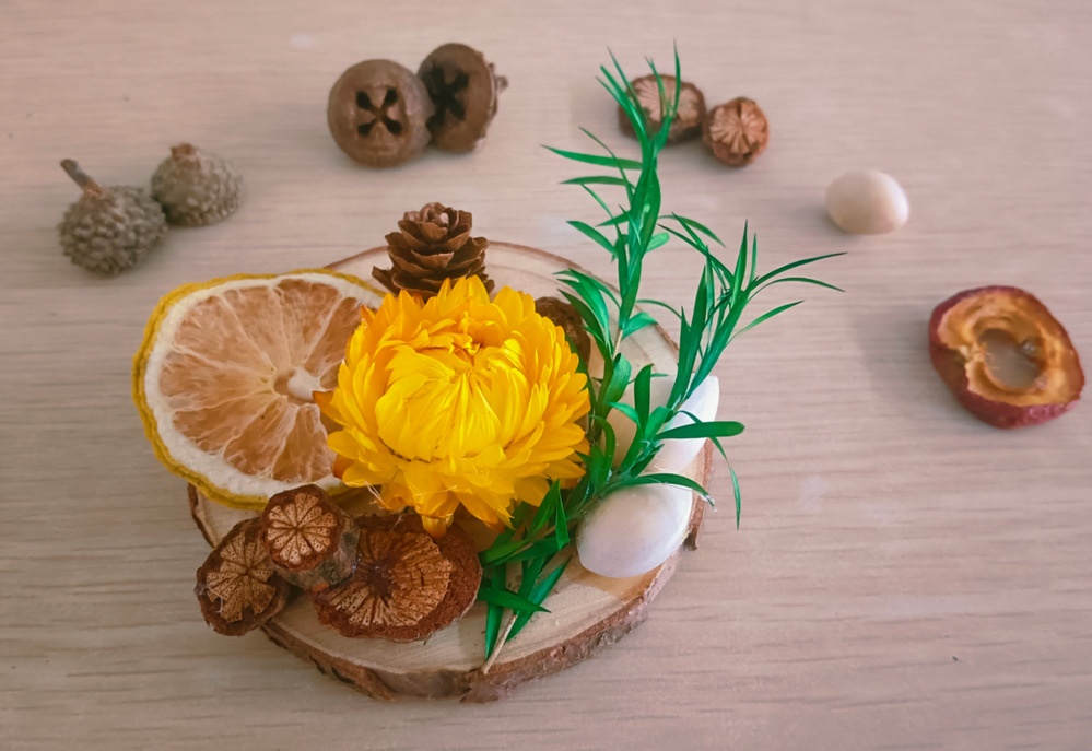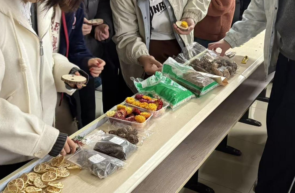 方寸之间,藏一味药香;指尖之上,生四季雅趣。3月18日,岐黄社举办“手作中药冰箱贴”主题活动,活动现场药香袅袅,沁人心脾。桌上陈列着松果、雏菊花、决明子、白果等各类中草药材料,琳琅满目,引人驻足。