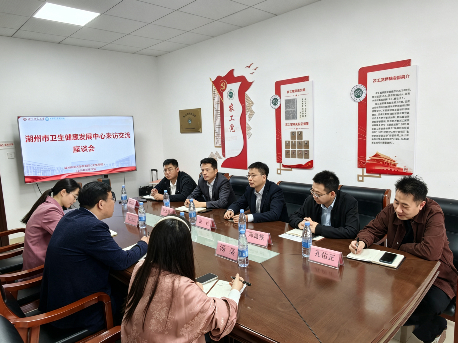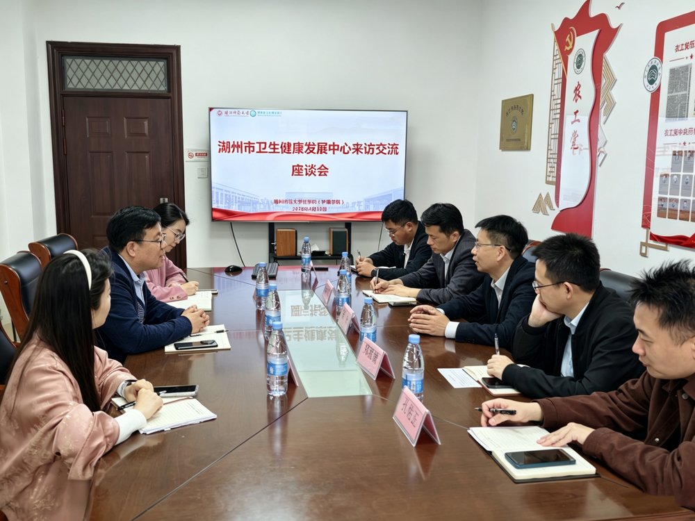 为进一步推动医学教育与地方卫生健康事业深度融合,探索校地合作新路径,2026年4月10日,湖州市卫生健康发展中心党支部书记、主任张良一行莅临湖州师范大学医学院(护理学院),围绕卫生健康领域的前沿议题开展深入交流。学院党委副书记董建新出席座谈会,双方就人才培养、社会服务、政策研究及健康治理等领域展开深入交流。